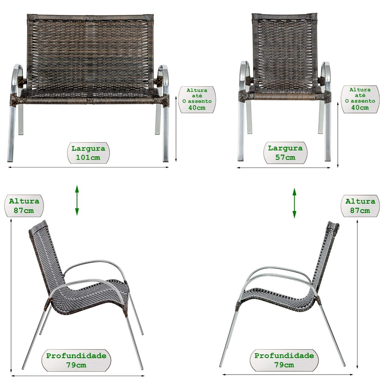 Estrutura: Alumínio.
